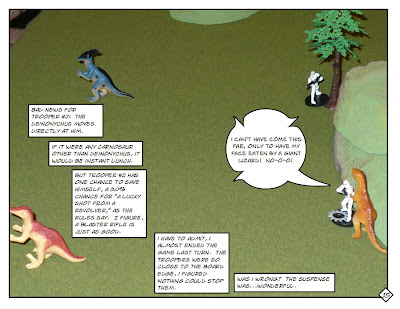 They also come with their own rules, "Snowman Wars," which is a simple little black-and-white booklet with some artwork and spelling errors. I haven't played them yet, but they're straight forward enough to be able to play fairly quickly. The only problem I have with that is I don't have nearly enough winter scenery; what you see in the pictures above is it!